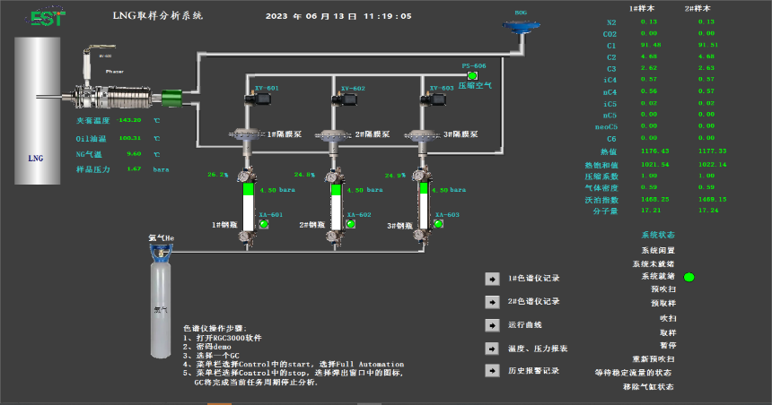 LNG采样系统概述 LNG采样系统是一款专为液化天然气(LNG)取样场景设计的高效、精准化集成设备,适用于LNG接收站、储罐、槽车及船舶等场景的样品采集与分析。系统通过创新结构设计和热管理技术,解决了传统LNG采样过程中因相变、温度波动导致的样品失真问题,确保采集样本的完整性与代表性。其轻量化、模块化设计可适配复杂工况,满足无支架安装需求,显著提升采样效率与可靠性。 技术亮点 1. 独有过冷腔设计: 2. 快速闪蒸与充分混合技术 : 3. 大功率油浴加热无死区设计 : 4. 双腔隔离防热传导 : 5. 节流孔抗预汽化干扰: 6. 零维护可靠性设计: 7. 轻量化便携式结构: 通过紧凑型布局与航空级轻质材料应用,设备体积较传统方案缩减40%,重量降低50%,支持手持或嵌入式安装,无需额外支架适配复杂空间。 核心价值 本系统以技术创新突破LNG采样领域的技术瓶颈,通过精准控温、高效混合及无维护设计,为用户提供高保真、低运维成本的解决方案,助力LNG贸易计量与质量管控的标准化与高效化。
